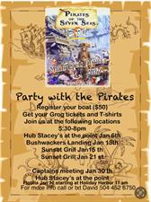 Come party with the Pirates of Lost Treasure and help support Secret Santa. The annual Mardi Gras Flotilla is January 31st leaving Holiday Harbor Marina at 11:00am and traveling along the intercoastal to the Flora Bama. Join us at Sunset Grille to register your boat, get your grog raffle tickets, and flotilla T shirts.